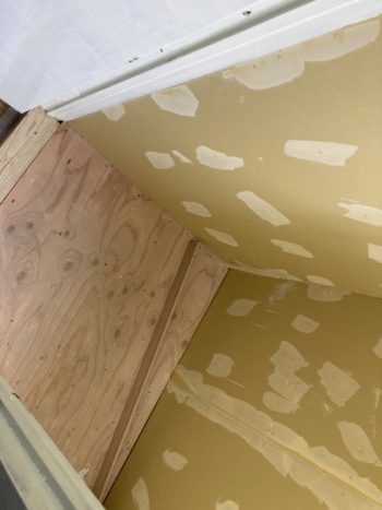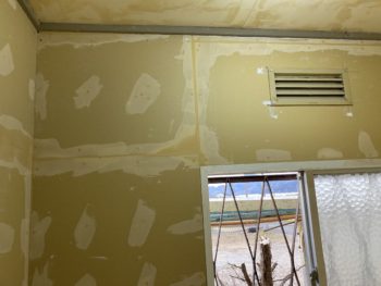 壁を造作した後は、壁紙をキレイに貼りために、パテで下地処理を施します。