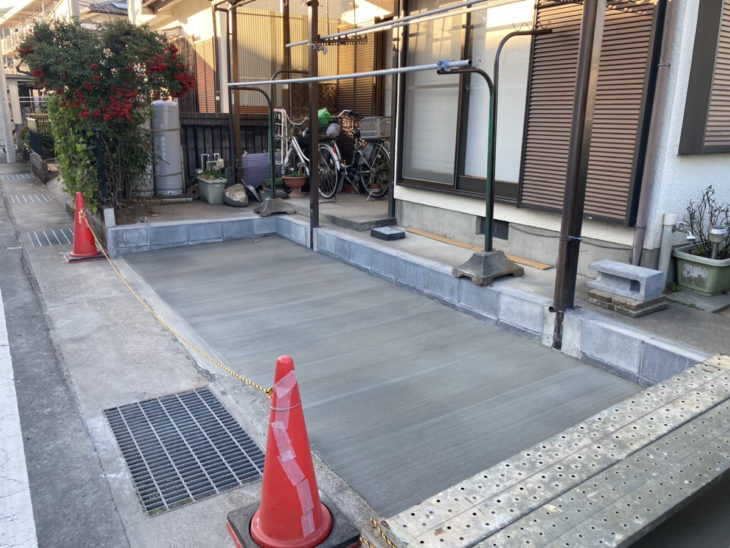 打設後はすぐには車は停められないので乾かし期間として1週間前後は必要です。