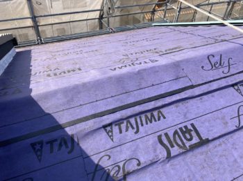 アスファルトルーフィングという粘着性の防水紙を敷き込むことで、