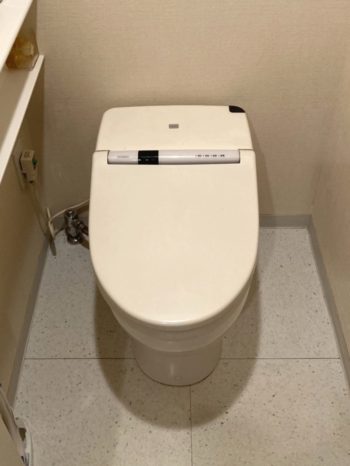 静岡県三島市トイレ交換です。マンションで16年後使用されたウォシュレットから水が漏れてしまい、トイレ交換のご依頼をいただきました。 |