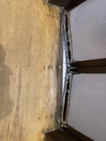 クッションフロアを剥がしてみると、水の侵入によりかなり弱っています。