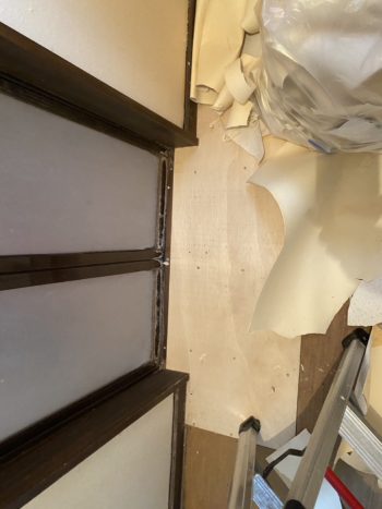 同じ日に内装職人さんも手配したので、同時進行で壁紙など剥がしてもらっています。
