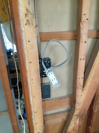 浴室の工事の際と同様に、解体が完了したら各所の配線を行っていきます。