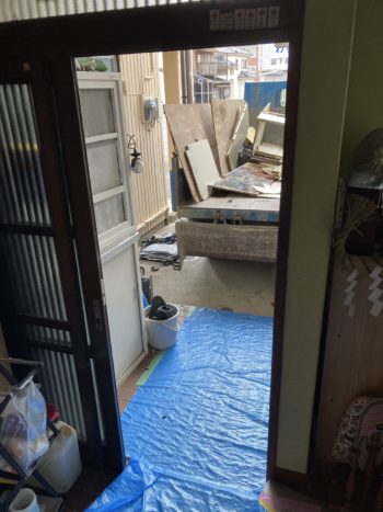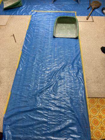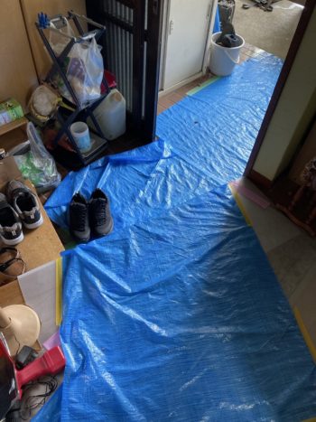 浴室の工事の際と同様に、まずは養生から始めます。