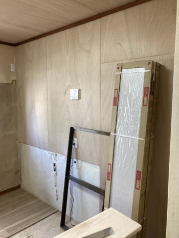 クロスの張替え工事完了した為、キッチンの組み立てを行います。