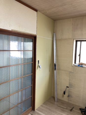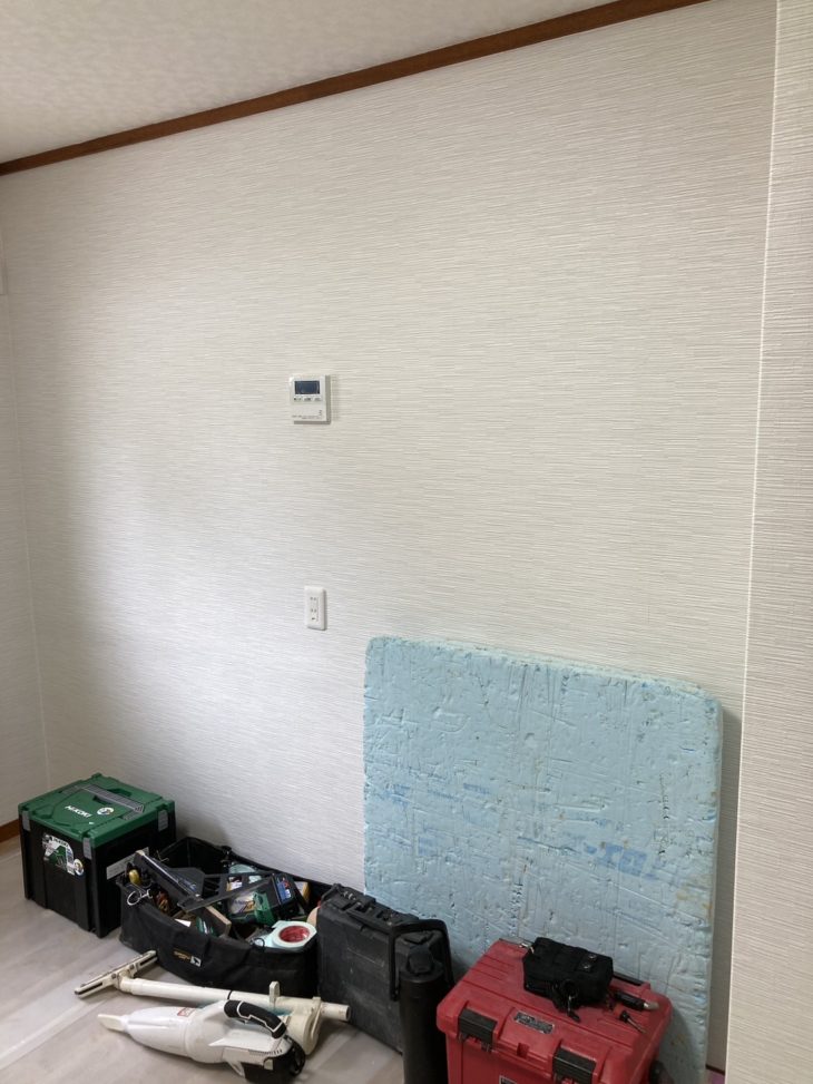大工工事が完了した為、天井と壁のクロスの張替えを行います。