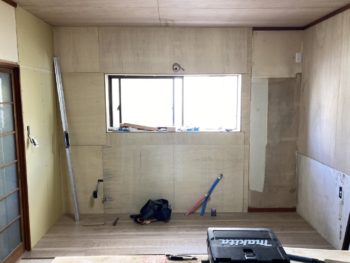 配線、配管移設工事が完了した為、大工工事にて下地の補修を行います。