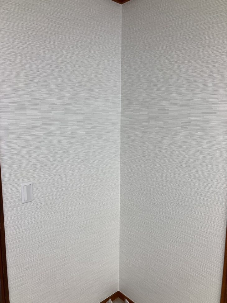 リフォームなので既存の壁下地の状況により多少凹凸が出てしまう事もある為、下地が出にくい壁紙をお勧めしています。