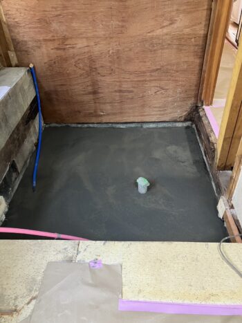 浴室の配線、配管が完了したので、コンクリートの打設を行いました。
