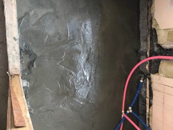 解体後、でこぼこしていたり勾配がある状態でした。ユニットバスを設置する上で安定した設置面が必要なため、コンクリートを敷き直しました。 |