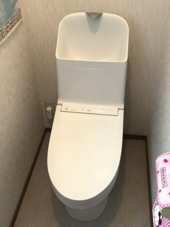 <使用商材>TOTO ZR1 リフォームが完了しました。 トイレ本体はホワイト、クッションフロアも以前より明るい色をお選びいただいたので、トイレ全体が明るくなったと喜んでいただきました。 ニラスイホーム 担当:橋本 |