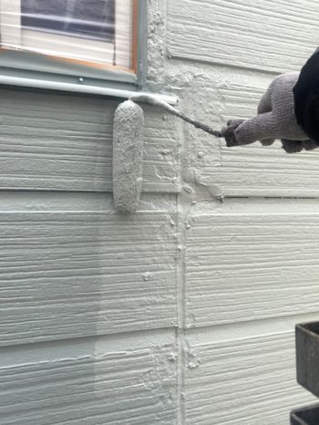 静岡県東部地区外装リフォーム5日目です。下地調整を行い下塗りを塗っていきます。 |