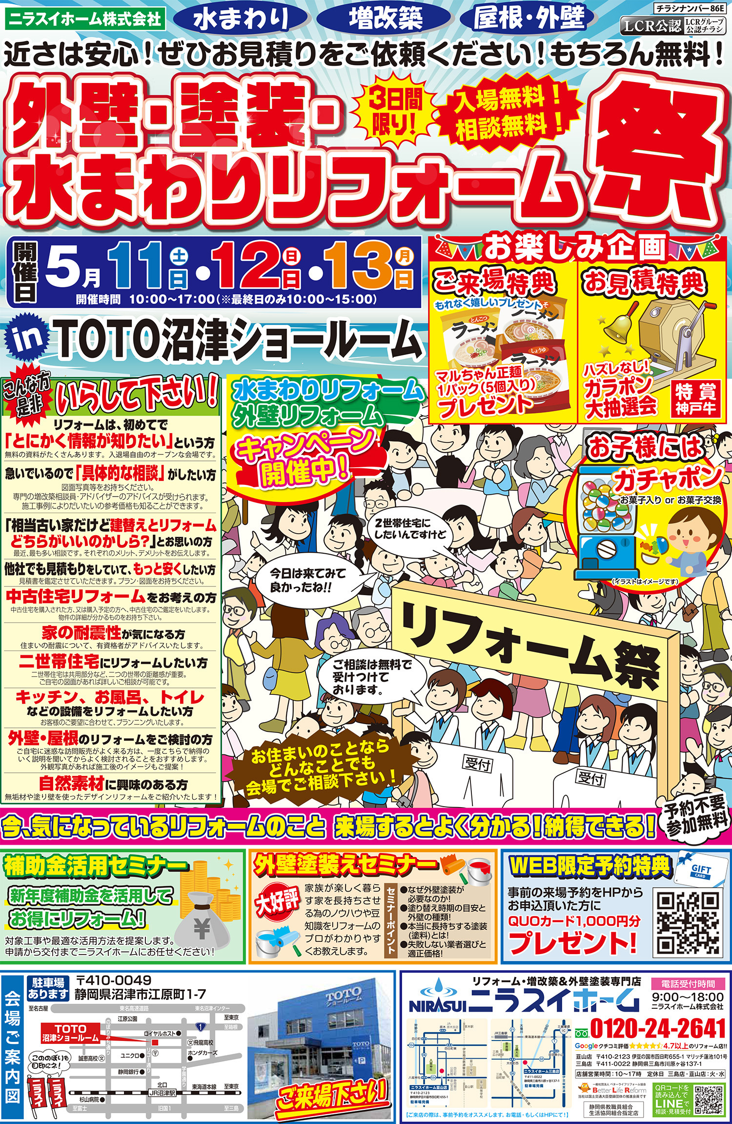 2024年5月11日(土)・12日(日)・13日(月)の3日間、外装塗装&水まわりリフォーム祭を開催いたします!