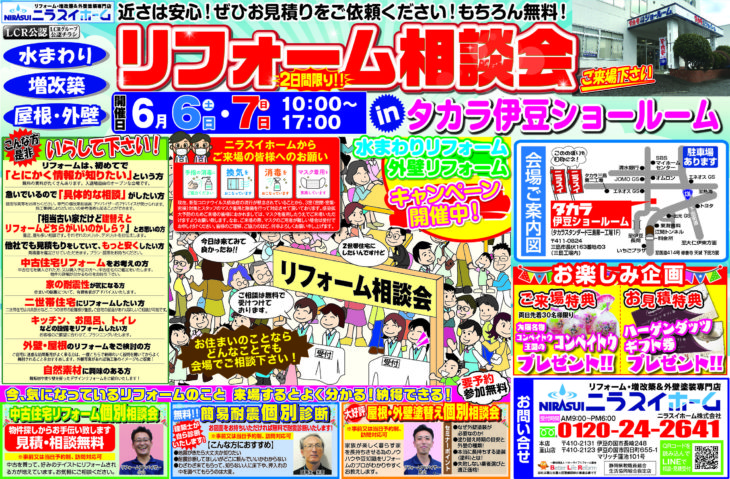 EVENTS 【6/6(土) 6/7(日)開催!】リフォーム相談会 in タカラ伊豆ショールーム(終了しました)