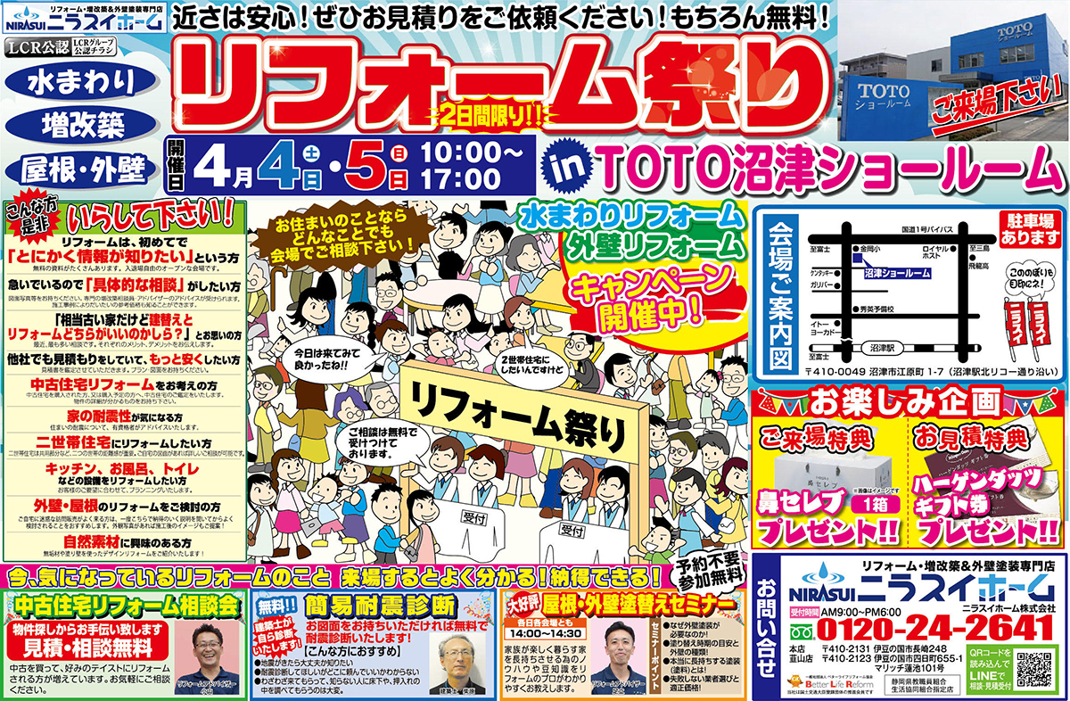EVENTS 【4/4(土)4/5(日)開催!】リフォーム祭 in TOTO沼津ショールーム(終了しました)