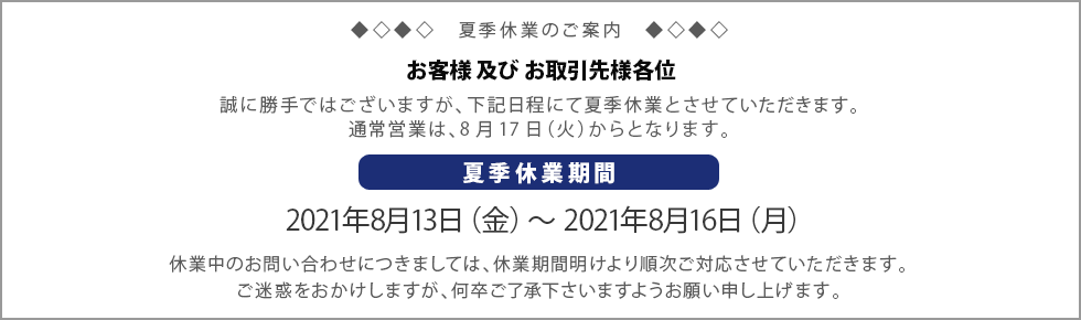 定休日:火曜・水曜(年末年始・GW・夏季休業)