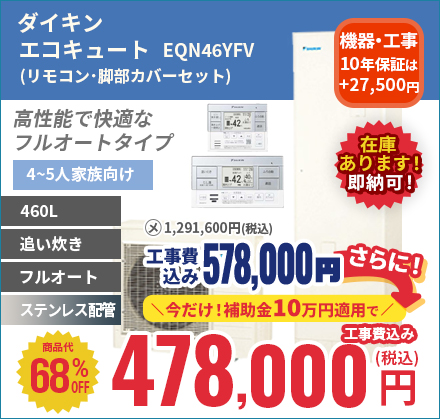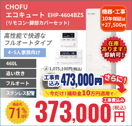 補助金適用の高効率エコキュートが